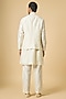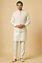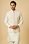 Featuring a fawn beige bundi jacket in silk base. It is paired with a kurta and pants. Style it with a pair of mojaris and a watch for festive occasions, weddings or pooja ceremony.