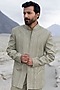 Featuring a green short indowestern jacket in poly knit base with hand embroidery. It is paired with pants. Style it with mojaris for a festive occasion, wedding, mehendi or engagement ceremony, exuding charm and elegance.
