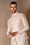 Featuring a mint green and pink bundi jacket in banarasi silk base with floral digital print and mirror work. It is paired with a printed banarasi silk kurta. Perfect attire for festive occasions or wedding ceremonies.