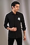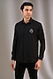 Featuring a black shirt in acetate base with reindeer brooch detail. Perfect attire for a casual look, exuding charm and elegance.