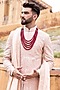 Featuring a pink sherwani in raw silk base with hand embroidery. It is paired with a cotton silk kurta, churidar and a pure silk stole. Perfect for a wedding or haldi ceremony, style it with mojaris and a sleek watch.