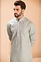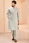 Featuring a pista green kurta in linen base with zari embroidery and metal work. It is paired with matching aligarhi pants.