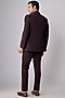 Featuring a purple front-open short indowestern jacket in poly knit base with hand embroidery. It is paired with a crochet waistcoat and pants. Style it with mojaris for a festive occasion, wedding or engagement ceremony, exuding charm and elegance.