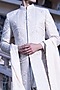 Featuring a rose gold sherwani in raw silk base with hand embroidery. It is paired with a cotton silk kurta, pants and an embroidered pure silk stole. Perfect for wedding ceremonies.