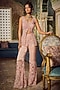 Featuring a pink peplum in tulle base with embroidery. It is paired with embroidered pants. Accentuate it with zircon or swarovski jewellery, embellished heels and a clutch for a sangeet or wedding ceremony.