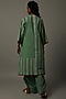 Featuring a green tunic in handwoven cotton khadi base with thread hand embroidery. It is paired with matching pull string pants.