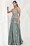 Featuring an agate green peplum top in georgette base with couture embroidery, floral embellishments, and a halter-neck. It is paired with a matching flared skirt and a net dupatta.