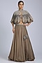 Featuring a grey paneled cape in organza base. It is paired with a bustier and a skirt. Accentuate it with statement jewellery, a metallic clutch, and heels for an ethereal look, perfect for sangeet ceremonies, cocktail evenings or grand festive parties.