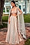 Featuring an ice blue and rosewood peach lehenga in chanderi base with floral and couture embroidery. It is paired with a matching strappy bustier and a mono net dupatta.
