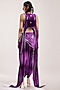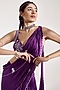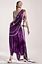 Featuring an indigo purple pre-draped saree in satin silk base with two detachable veils having floral and scallop detailing. It is paired with matching dhoti pants and a blouse. Perfect wear for festive occasions or wedding ceremonies.