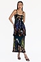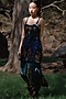 Featuring a midnight blue hand pleated dress in natural silk base with landscape print. Pair with geometric earrings and ankle-strap sandals for a modern cocktail or art showcase.