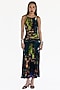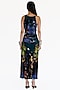Featuring a midnight blue dress in natural silk base with mosaic print. Pair with geometric earrings and ankle-strap sandals for a modern cocktail or art showcase.