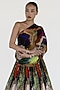 Featuring a multi-colored top in natural silk base with mosaic print. It is paired with a skirt. Pair with geometric earrings and ankle-strap sandals for a modern cocktail or art showcase.