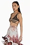 Featuring a midnight blue blouse in natural silk base with carved hand embroidery. It is paired with a rose pink printed hand sculpted maxi skirt. Pair with geometric earrings and ankle-strap sandals for a modern cocktail or art showcase.