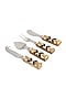 Cheese sets always add a touch of sophistication to your platters. This beautiful gold tone set is elegant and very practical. The spatulas are with bird design to add the touch quirk and the knife handle has a flower to complement the entire set.