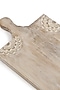Natural Mango Wood Cheese Board cum Platter with Carved Flower Detail in Whitewash Finish is a beautifully crafted piece that brings a unique rustic charm to your table. The whitewash finish adds a touch of elegance, while the carved flower details on the edges enhance its aesthetic appeal.