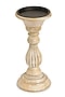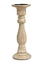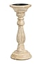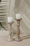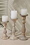 Add a rustic charm and subtle elegance to your decor. This exquisite design set of three candle holders in a distressed finish is classy and subtle. Complete the look with other carved pieces from this collection.
