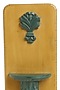 This unique handcrafted shelf with carving has a rustic charm. The vintage look of this shelf, combined with the brass accents from our divine collection, gives you your unique masterpiece.