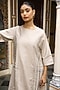 Featuring a beige checkered A-line midi dress in silk base with hand embroidery. Accentuate it with dangler earrings and heels for an evening look.