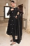 Featuring a black anarkali in silk base with zardosi embroidery. It is paired with pants and a dupatta. Accentuate it with statement jewellery and heels for a festive ceremony.