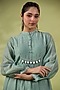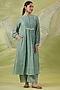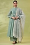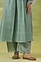 Featuring a sage green kurta in cotton silk base with thread, shells, kantha and beads work. It is paired with pants and a hand block printed dupatta. Accentuate with jhumkas and juttis for a festive-ready look.