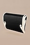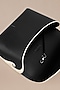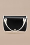 Featuring a black clutch in faux leather base with ivory inlay work. It has a faux suede lining.
