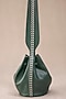 Featuring a forest green cross-body bucket bag in PU and faux leather base with laser cut detailing. It has a card holder with slots, a key holder, and a poly suede lining.