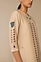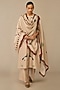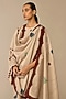 Featuring a beige kurta in cotton silk base with faux leather cut-out sleeves and blossom detailing. It is paired with flared palazzo pants and a dupatta. Accentuate it with statement earrings and heels for festive celebrations family gatherings.
