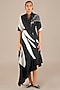 Featuring a black jacket in organza satin base with print. It is paired with a skirt and a belt. Perfect for evening wear.