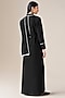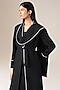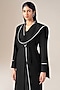Featuring a black abaya jacket in wool base with ivory piping detail and floral embroidery. It is paired with an inner top and a tasseled belt. Style it with minimal gold jewellery and sleek flats for an elegant, contemporary look, Perfect for work meetings, gallery events or refined daytime outings.