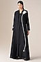 Featuring a black abaya jacket in wool base with monochromatic piping and floral embroidery. It is paired with an inner and a belt. Style it with minimal gold jewellery and sleek flats for an elegant, contemporary look, Perfect for work meetings, gallery events or refined daytime outings.