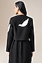 Featuring a black jacket in wool base with an overlap neckline and landscape embroidery. Style it with minimal gold jewellery and sleek flats for an elegant, contemporary look, Perfect for work meetings, gallery events or refined daytime outings.
