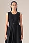 Featuring a black midi dress in wool base with pleats and cinched waist detail. It is paired with a faux leather belt. Style it with minimal gold jewellery and sleek flats for an elegant, contemporary look, Perfect for work meetings, gallery events or refined daytime outings.