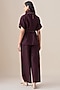 Featuring a burgundy top in pure linen base with wide sleeves with a scarf effect. It is paired with palazzo pants and a belt. Accentuate it with statement earrings and heels for a casual outing or family gathering.