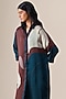 Featuring a dark smokey blue tunic in satin organza base. It is paired with an inner and wide-leg pants. Accentuate it with dangler earrings and juttis for festive gatherings or family dinners.