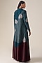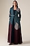 Featuring a deep blue and burnt red abaya in raw silk base. It is paired with an inner dress and a faux leather belt. Accentuate it with sleek gold studs and pointed-toe mules for a stylish ensemble, ideal for evening gatherings or modest festive events.