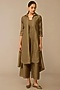 Featuring a golden-brown jacket in cotton silk base with faux leather cut-out details. It is paired with wide-leg trousers, an inner and a faux leather belt. Accentuate it with statement earrings and heels for a relaxed ensemble.