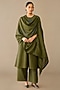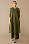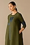 Featuring a green flared kurta in cotton silk base with faux leather cut-out and cross-stitch details. It is paired with flared palazzo pants and a dupatta. Accentuate it with statement earrings and heels for festive celebrations family gatherings.