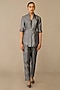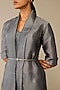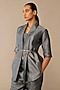 Featuring a grey cape in metallic base. It is paired with an inner, slim pants and an enameled buckled belt. Accentuate it with statement earrings and heels for a relaxed ensemble.