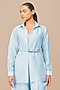 Featuring an ice blue shirt in chanderi base with cutwork embroidery. It is paired with an inner top having spaghetti straps, ankle-length pants and a belt. Accentuate it with statement earrings and heels for summer brunch or casual outing.
