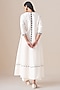 Featuring an ivory kurta in cotton silk base with swirl across the seams. It is paired with palazzo pants and a dupatta. Style it with minimal silver jewellery, soft waves, and classic heels for festive gatherings, intimate celebrations or elegant day soirees.