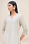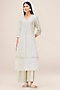 Featuring an ivory kurta in cotton and silk base with laser-cut detail. It is paired with palazzo and a dupatta. Accentuate it with dangler earrings and heels for festive gatherings, cultural events or poojas.