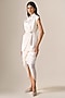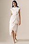 Featuring an ivory jacket in cotton silk base. It is paired with a satin draped skirt and a faux leather belt. Accentuate it with statement earrings and heels for evening or cocktail parties.