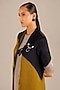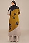 Featuring a camel-colored jacket in organza satin base with motifs detailing. It is paired with an inner and palazzo pants. Accessorize this designer set with heels, and earrings for a festive look.