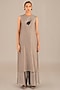 Fitted at bust and waist.