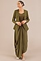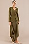 Featuring an olive jacket in linen base with embroidery. It is paired with a maxi dress. Accentuate it with hoop earrings and heels for evening wear.
