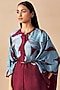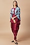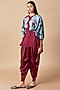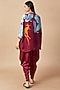 Featuring a purple kaftan shirt in silk base with digital print. It is paired with matching dhoti pants and a belt.