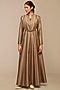 Featuring a taupe jacket in chanderi and cotton silk base with resham embroidery. It is paired with an inner dress and a belt. Accentuate it with dangler earrings and heels for an evening look.