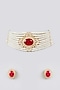 Featuring a gold finish choker necklace studded with cubic zirconia, red stone and fine pearls, set in mixed metal. It is paired with a matching pair of earrings. Perfect wear for festive occasions or wedding ceremonies.