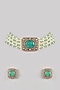 Gold Finish Green Kundan Polki & Beaded Choker Necklace Set